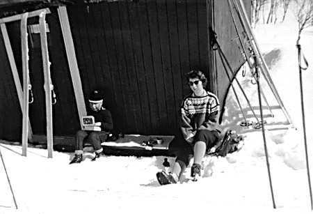 "Mette während einer Skitour in den Osterferien. Kleine Rast im Schnee."